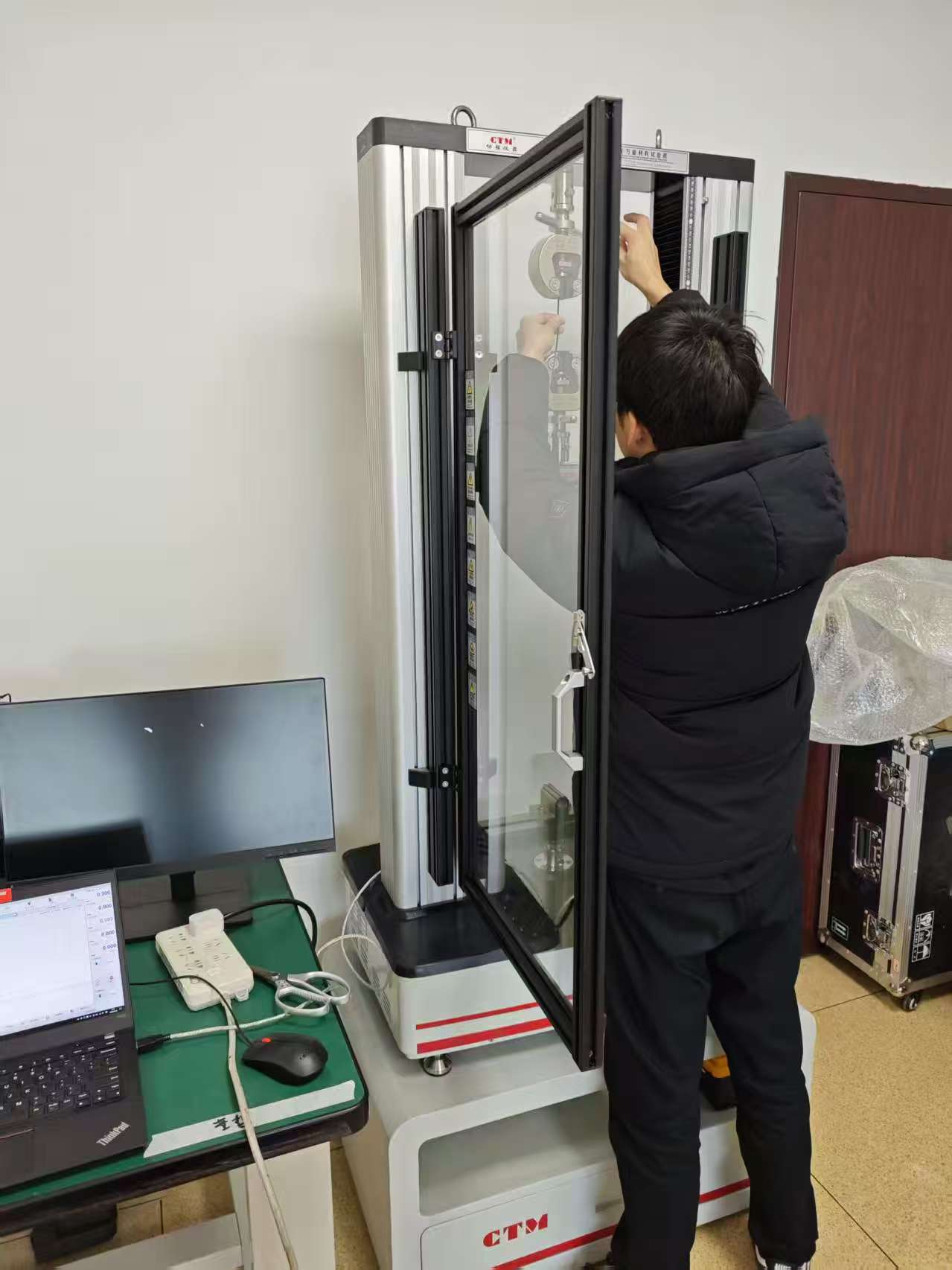 采购我们的电子万能材料试验机CTM2500,我们技术调试人员已安装完成且现场无任何遗留问题,